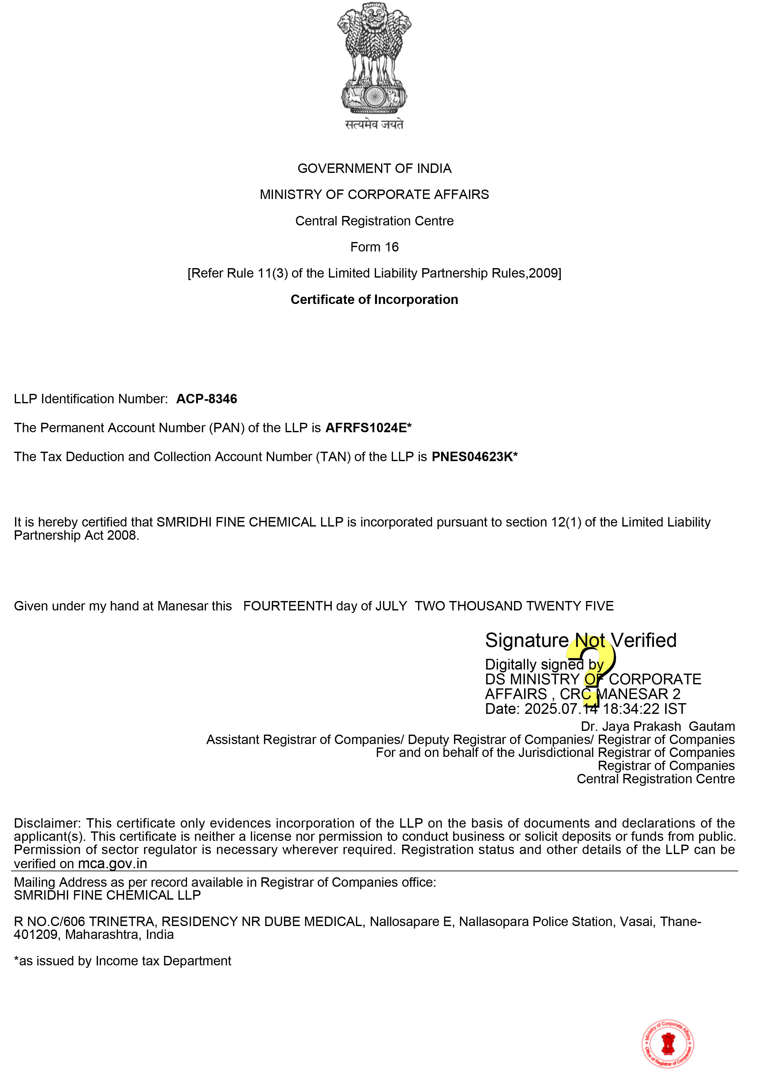 SMRIDHI FINE CHEMICAL LLP is a leading supplier of premium quality fine chemicals and food additives. With years of expertise in the chemical industry.